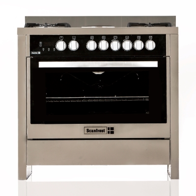 The SFC9502SS elevates the 9-Series with its professional Inox (stainless steel) finish, designed for both performance and enduring style. This expansive 90cm range features a powerful 5-burner gas hob, including a dedicated high-output wok burner for authentic stir-frying, all activated by full auto ignition.
